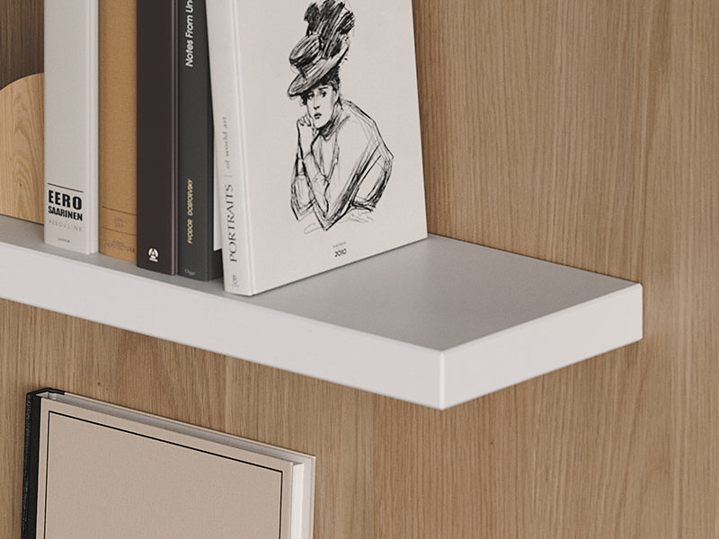 - Floats shelves that are 1 1/2" to 2" thick and 7" to 10" deep.